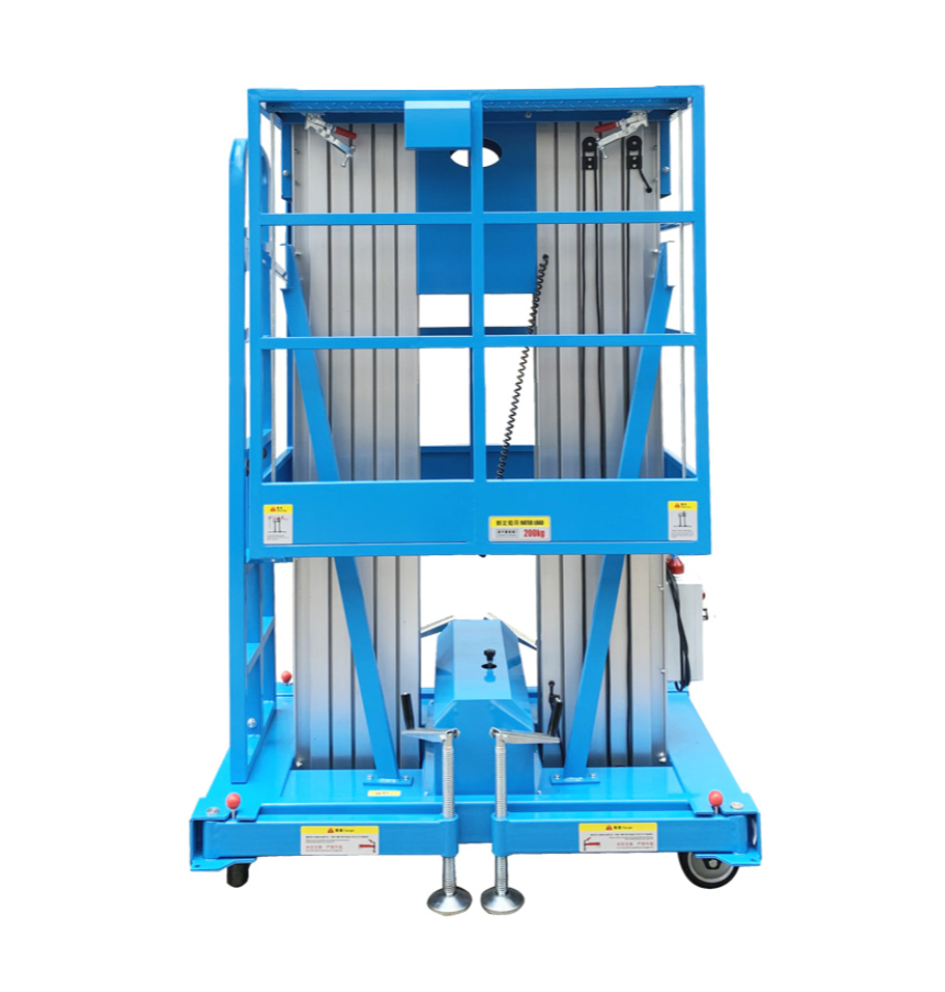 | 铝合金高空作业平台 | 双桅 | GTWY6-200S | 6 | 7.7 | 200 | 1.1*0.6 | 220V/1.1 | 420 | 1.35*0.85*1.65 |