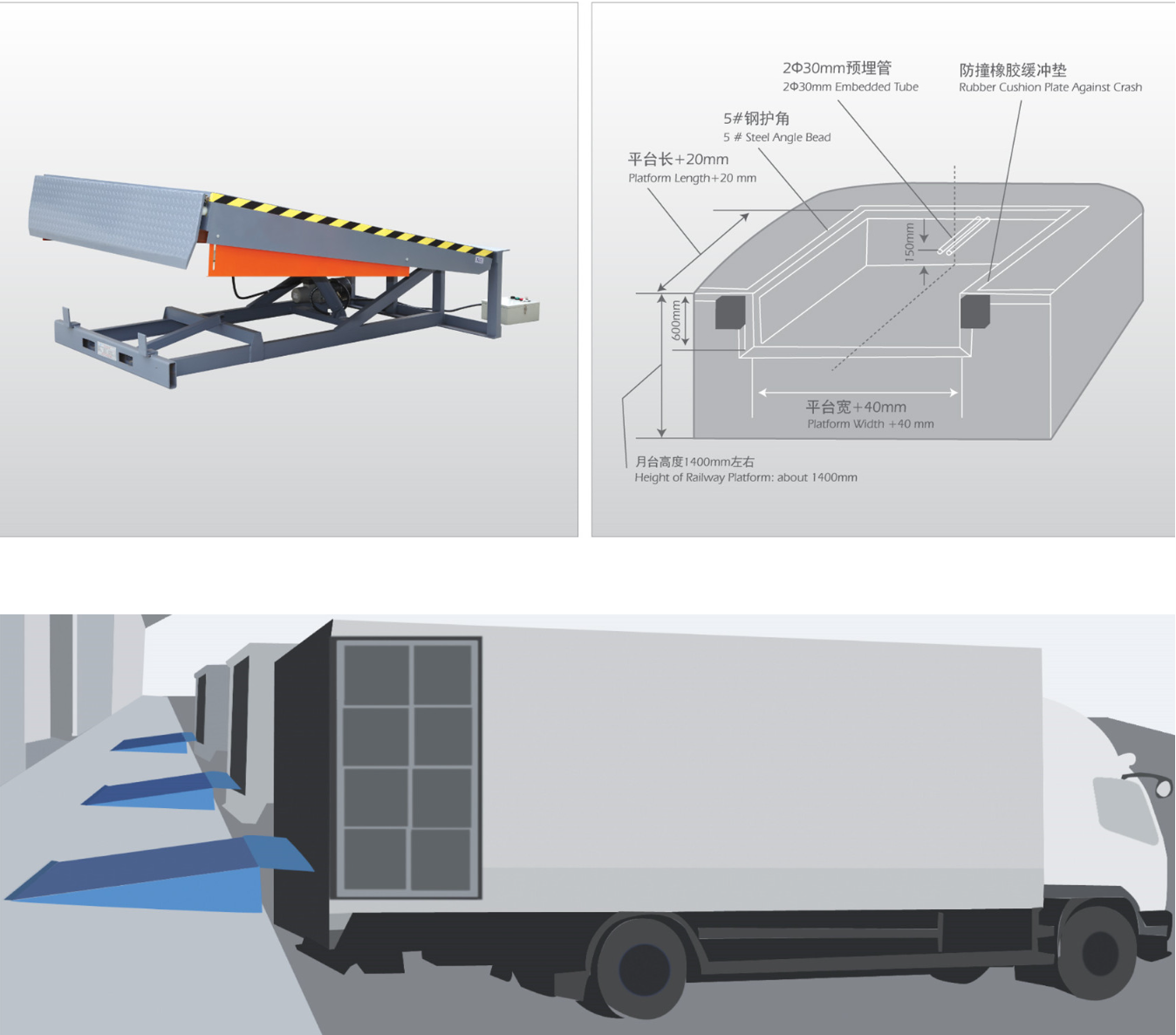 产品用途: 配合叉车从货车尾部或仓库等大批量装卸货物